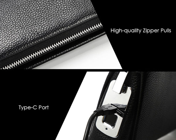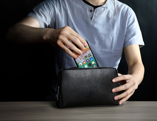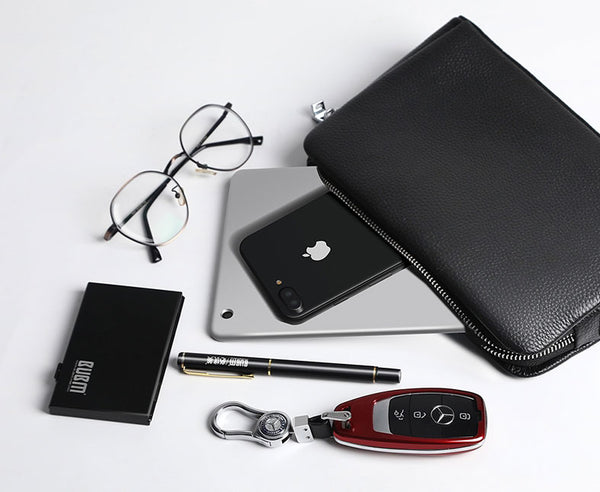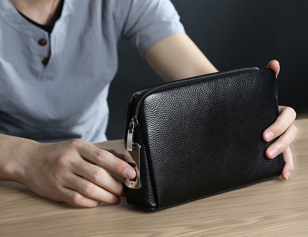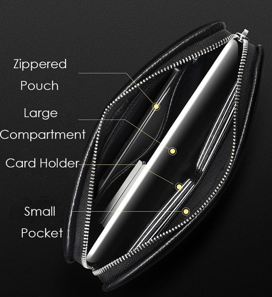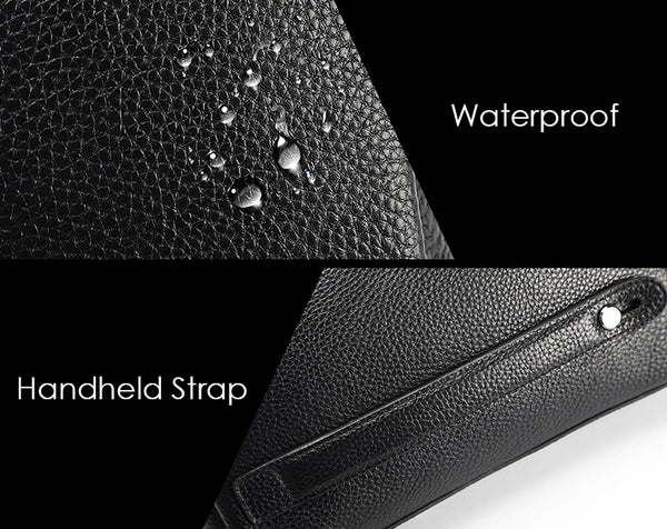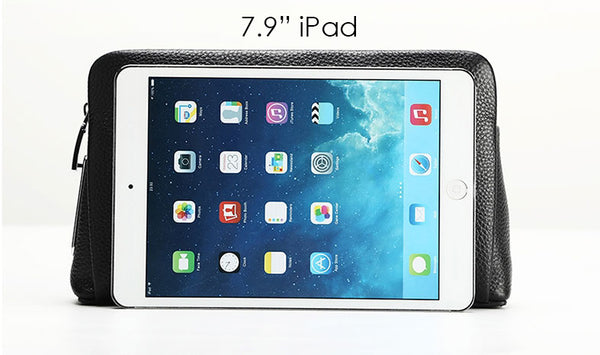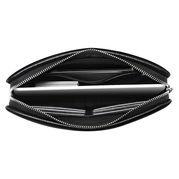 Featuring multiple zipped pockets, slip slots and fingerprint lock, this clutch keeps all your essentials safe in place. The main compartment can fit up to 7.9" tablet.
